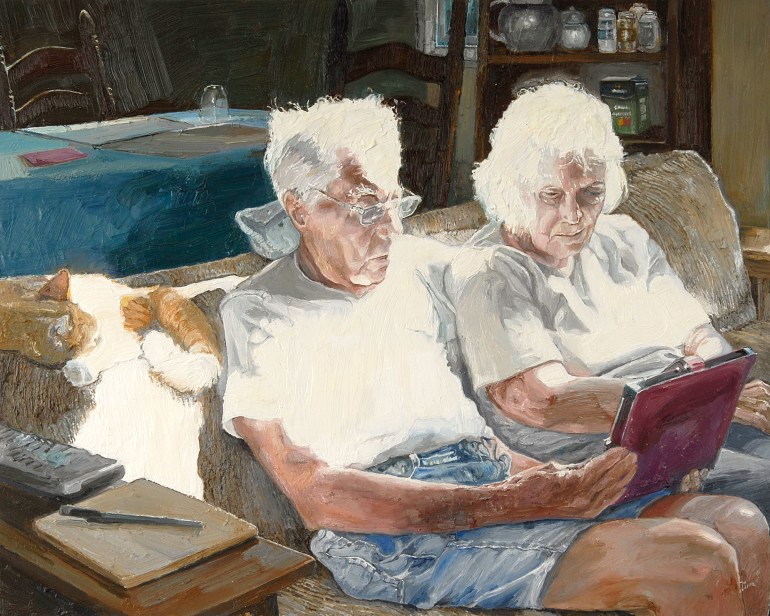“Watching History Repeat: 1933, 2016” (16″x20″) This is my portrait of my parents while