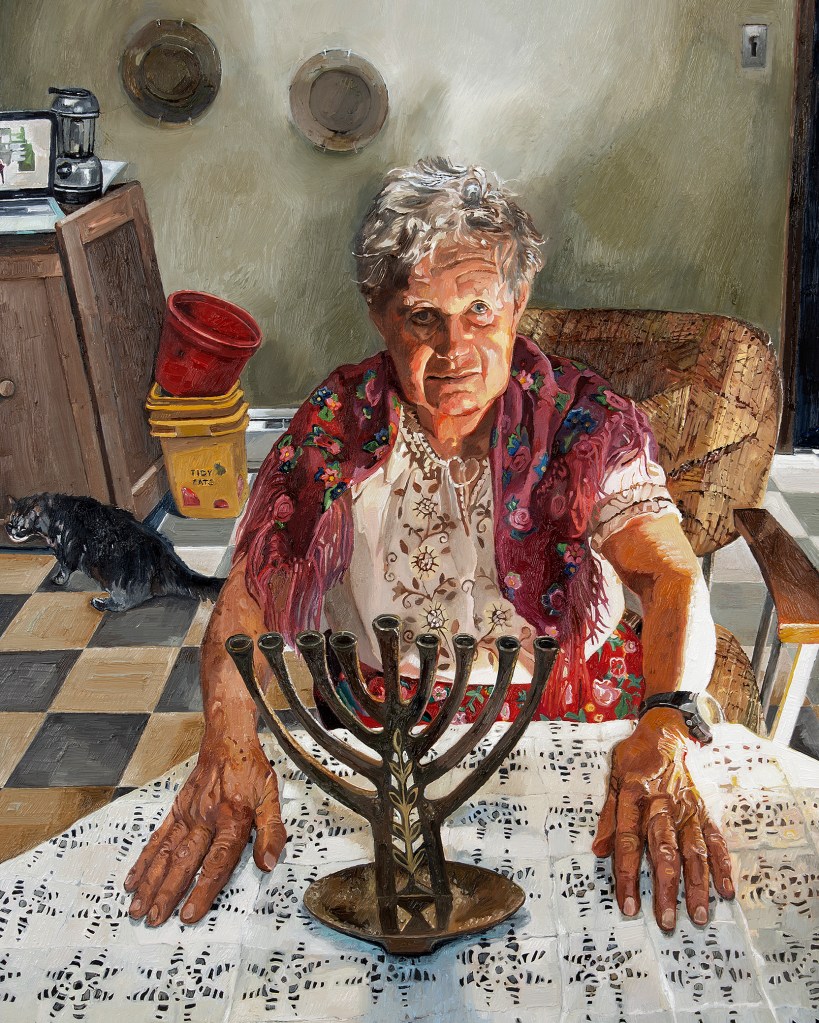 “The day we were sent home to stay home. March 13, 2020. Essex County, NY.” (36″x48″) First we were told to stay home for two weeks. Then we were told that everyone would be working online until May. Then May turned into a year, then longer. This is a portrait of my mother, who died during the COVID pandemic.